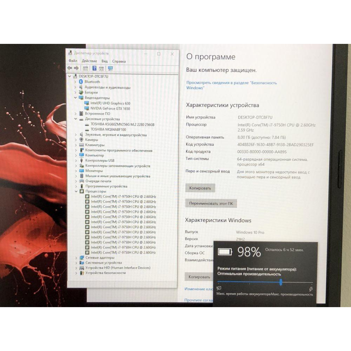 Екран 15.6“ 144 Гц IPS (1920x1080) Full HD, матовий / Intel Core i7-9750H / RAM 8 ГБ / SSD 256 Gb + HDD1000Gb / nVidia GeForce GTX 1650 T, 4 ГБ / Windows 10 Pro