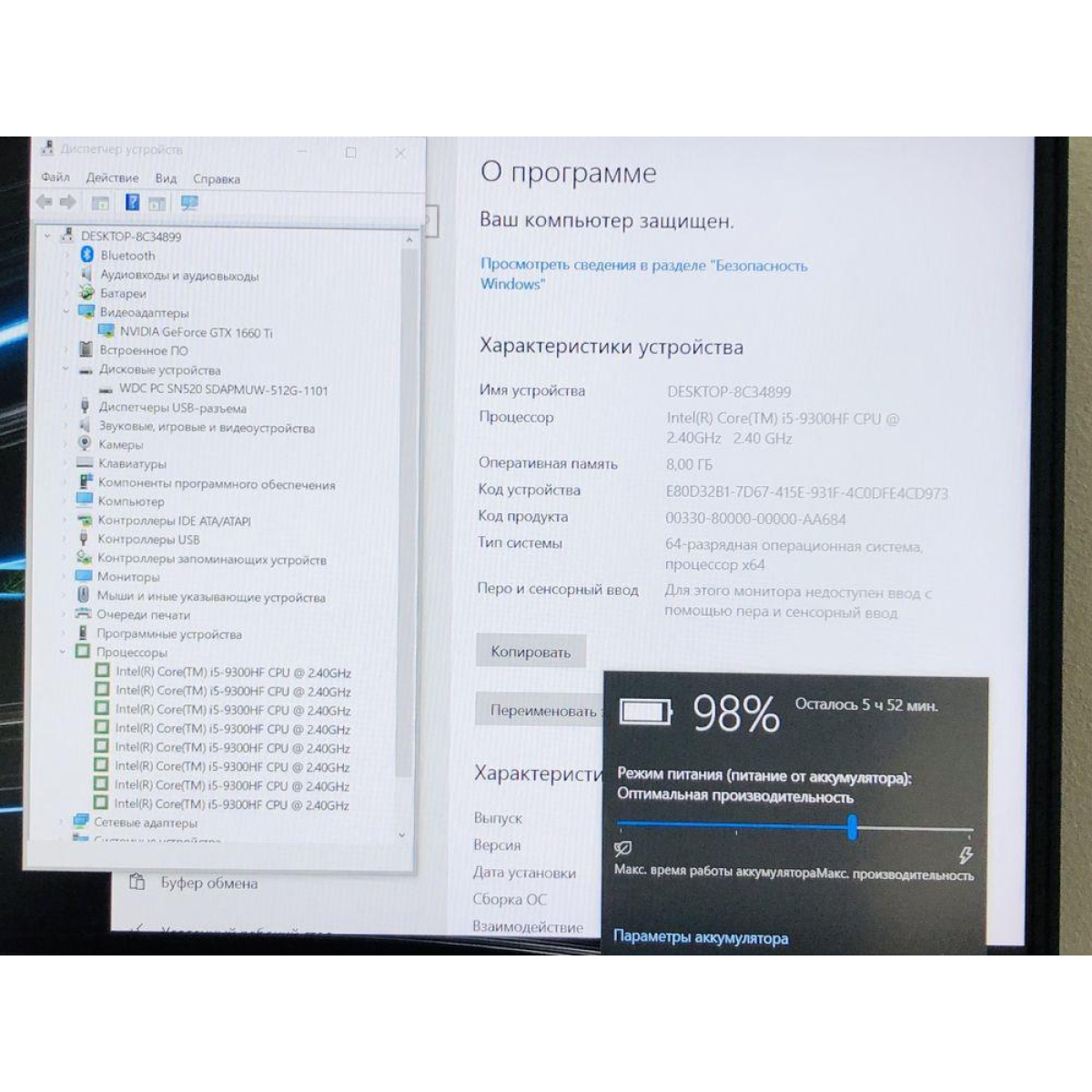 Оснащений 8 потоковим процесором Intel® Core™ i5-9300H і двома відеокартами: одна Intel UHD Graphics, а друга ігрова GTX1660Ti 4Gb виділеної відеопам“яті, достатньої для відео ігор.