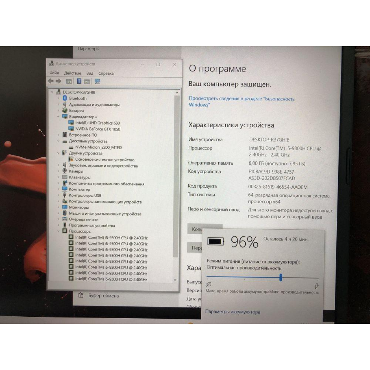 Оснащений 8 потоковим процесором Intel Core i5-9300H, і двома відеокартами: одна Intel UHD Graphics, а друга ігрова GTX 1050 4gb виділеної відеопам“яті, достатньої для відео ігор.