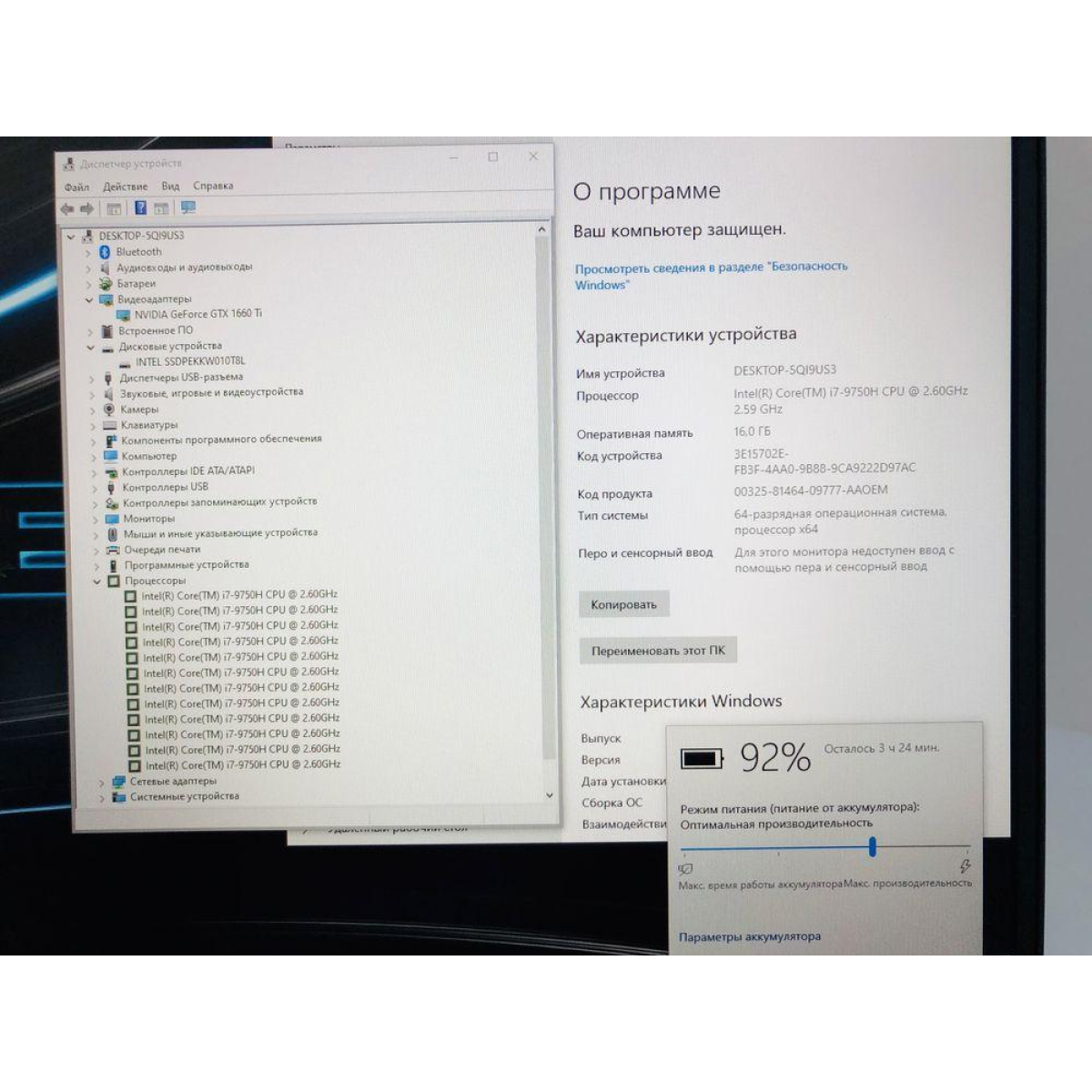 Оснащений 12 потоковим процесором Intel Core i7-9750H, і двома відеокартами: одна Intel UHD Graphics, а друга ігрова GTX 1660 6gb виділеної відеопам“яті, достатньої для відео ігор.