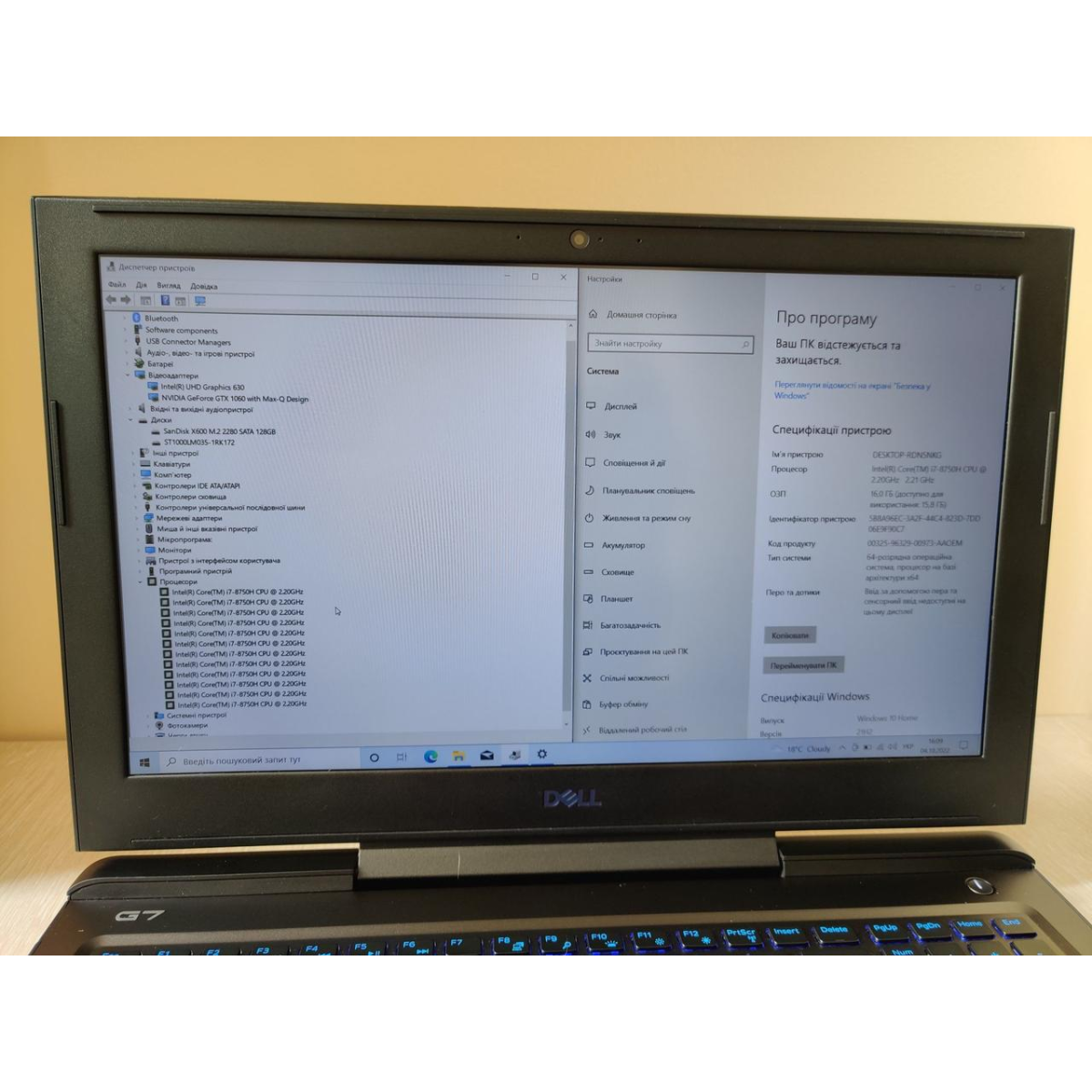 • Процесор: Intel Core i7-8750H ( 12 по 2.2- 4.1 ГГц)
