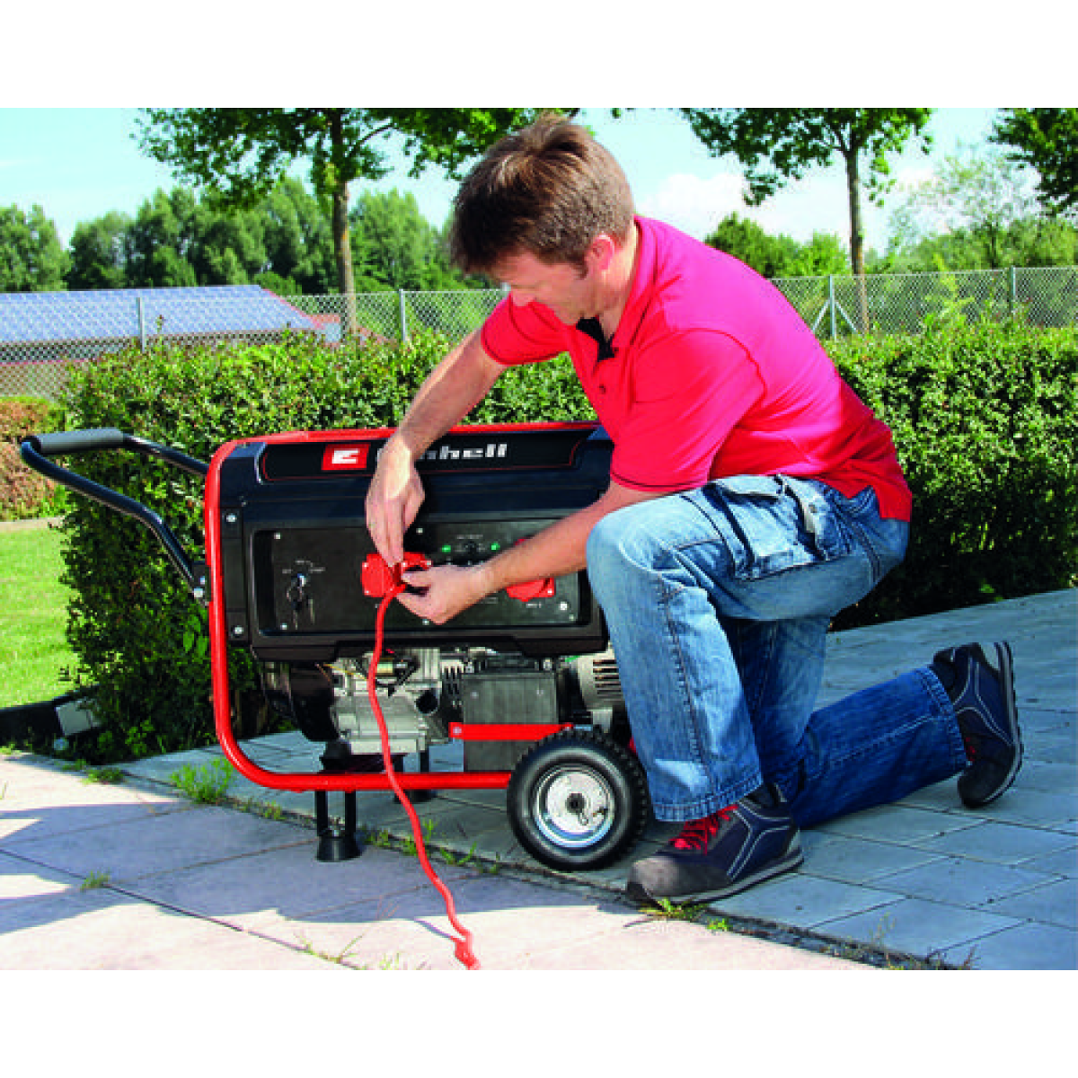Генератор Einhell TC-PG 55/E5 (бензиновий) працює від потужного, міцного та чистого 4-тактного двигуна та постачає електроенергію скрізь, де вона потрібна, незалежно від джерела живлення: тож із мінімальними зусиллями він швидко постачає електроенергію у всі ділянки. , на будівельних майданчиках, у кемпінгу, у майстернях і гаражах або навіть під час відпустки в окремо стоячих будівлях, таких як лісові, рибальські чи гірські будиночки. Крім того, двигун є двигуном з низьким рівнем викидів завдяки відповідності нормам щодо викидів 5. Є дві розетки на 230 В і одна розетка на 400 В для підключення пристроїв і живлення їх електроенергією: для розетки 230 В доступна безперервна потужність 3000 Вт і максимальна потужність 3300 Вт, безперервна потужність 3600 Вт і максимальна потужність 5500 Вт для розетки 400 В. Функція AVR (система автоматичного контролю напруги) забезпечує стабільну вихідну потужність, електричний запуск зручний для користувача, а стартерна батарея вже включена в комплект виробу. Великий 25-літровий бак з індикатором рівня заповнення підходить для безперервної роботи генератора. Для безпеки та тривалого використання обладнання має вимикач перевантаження та відключення низького рівня масла. Генератор має два великих колеса і шарнірну ручку для мобільності, що дозволяє легко транспортувати його з місця на місце.