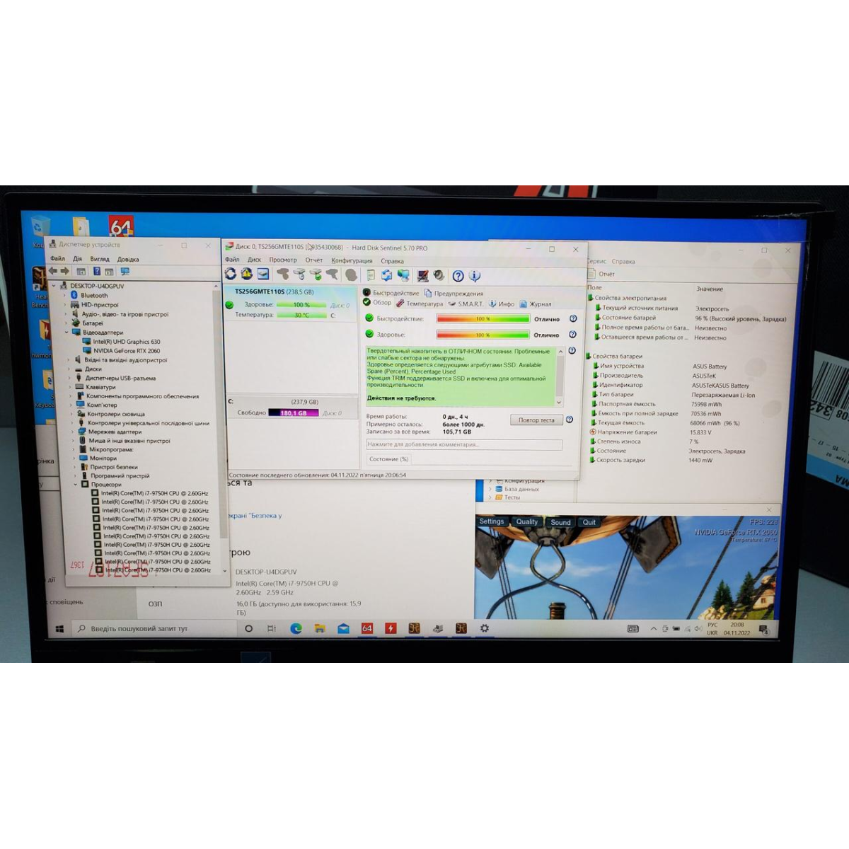 Ноутбук Asus ROG Zephyrus GU502GV-BI7N10 (i7-9750H, RTX 2060, 16Gb, 256Gb)