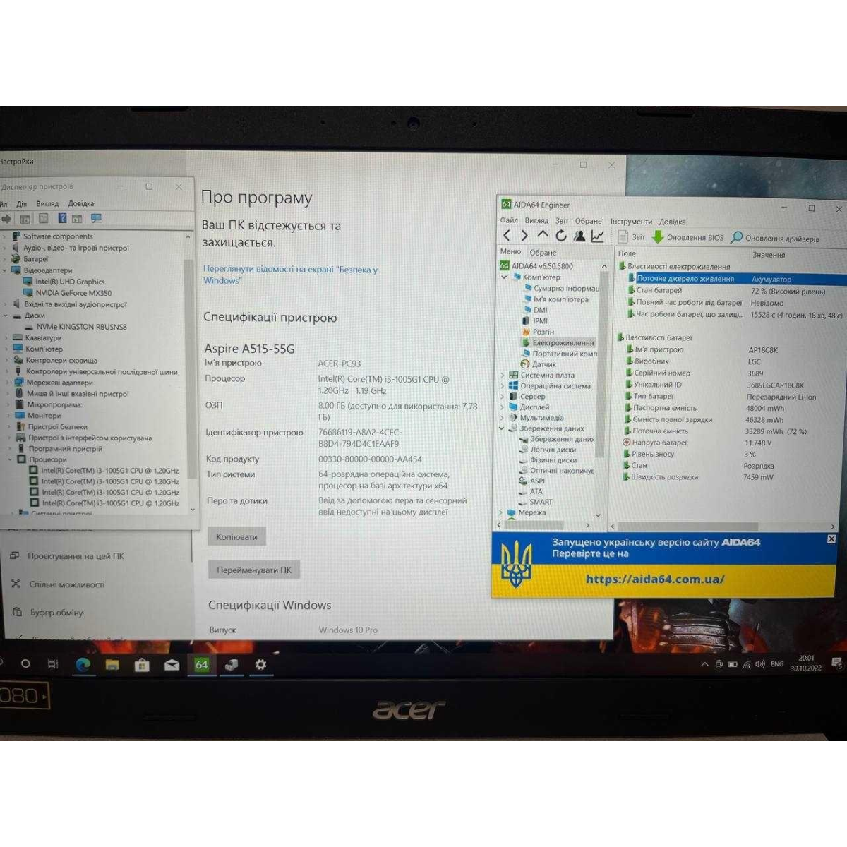Ноутбук Acer Aspire A515-55G - i3-1005G1/Ram 8 Gb/SSD256GB/ MX 350 IPS