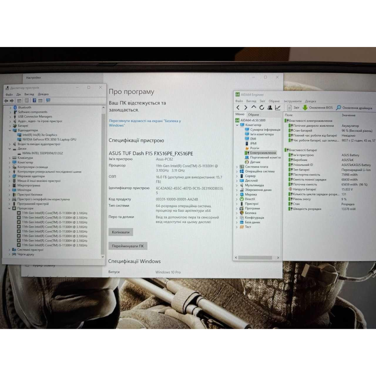 Ноутбук ASUS TUF DASH F15 - 144Hz/i5-11300H/RTX 3050TI 4GB/16 GB/SSD 512 GB