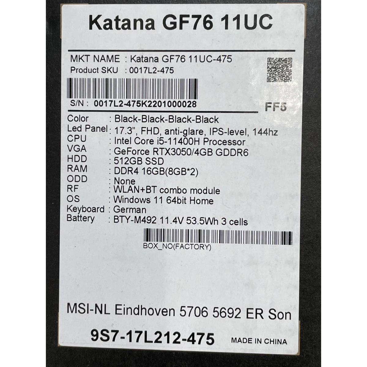Ноутбук MSI Katana GF76 11UD / RTX 3050