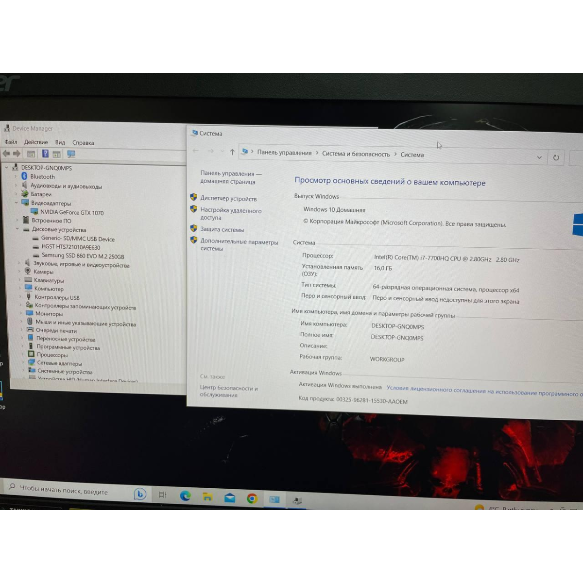 Відеокарта - intel HD Graphics 630 + Nvidia Geforce GTX 1070 - 8 GB