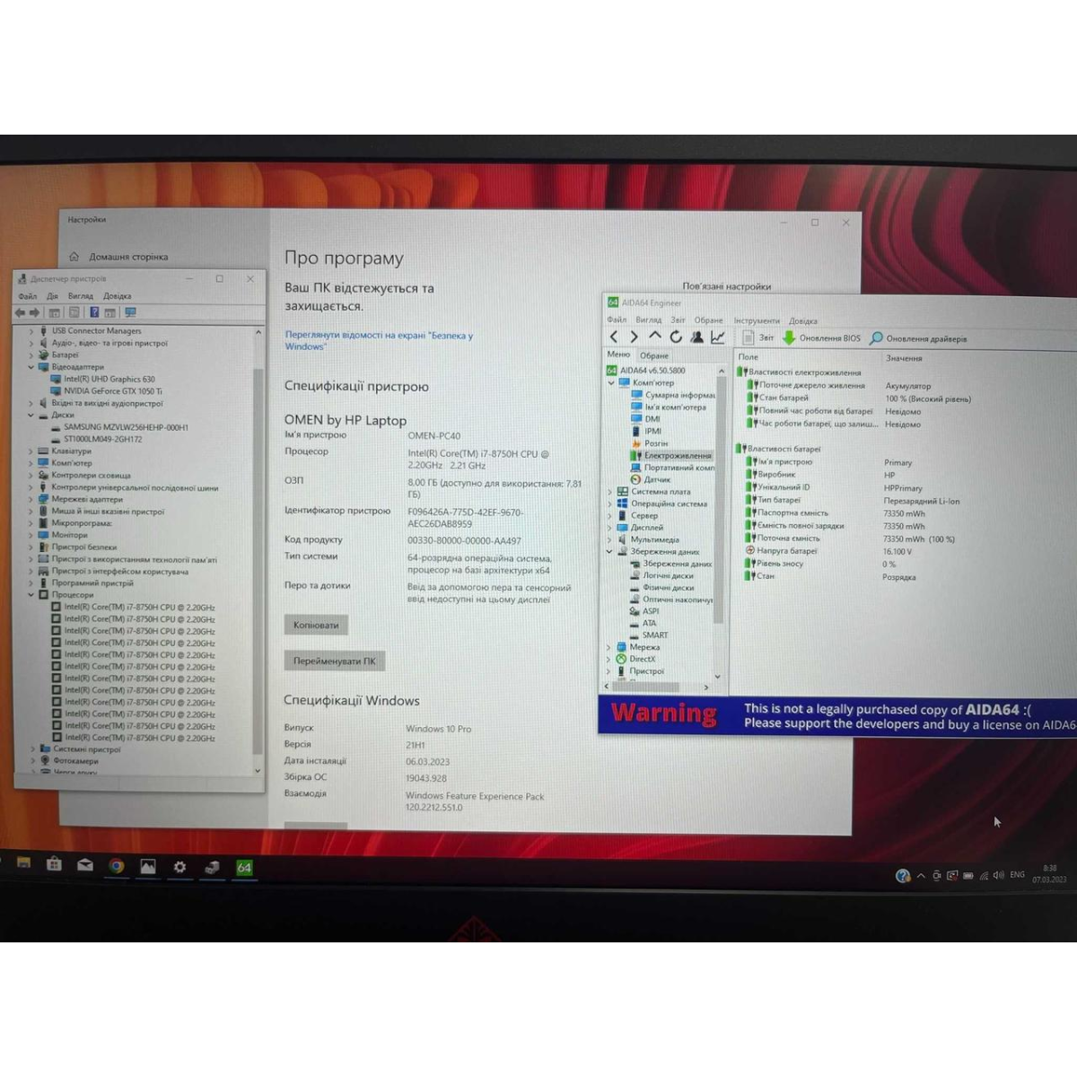Ноутбук HP OMEN 17.3“ - i7-8750H/ Ram 8Gb/ SSD 240Gb + HDD 1Tb/ GTX 1050Ti