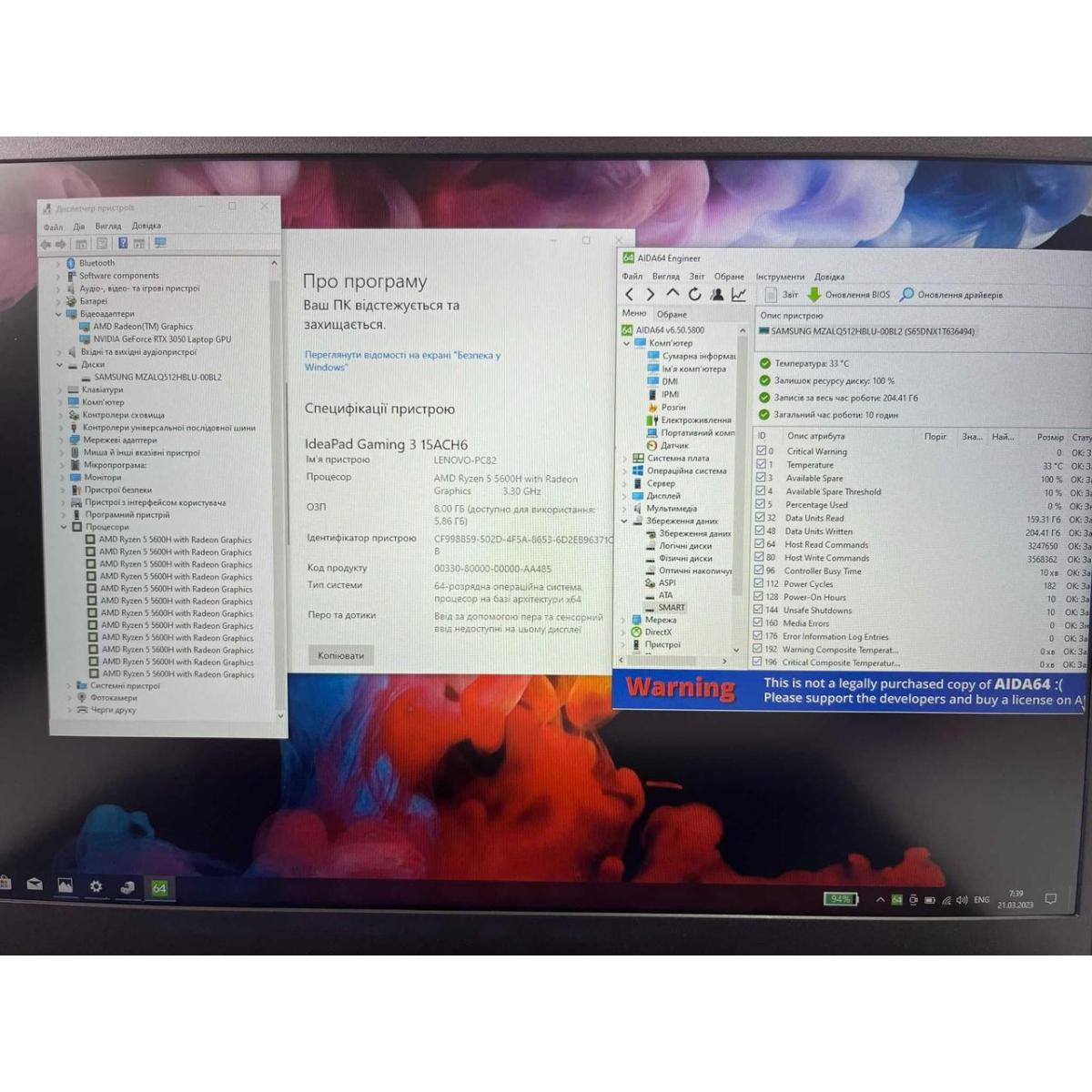 Ноутбук Lenovo Gaming 3 15,6 - Ryzen 5 5600H/ RAM 8 Gb/ SSD 512Gb/ RTX 3050 4 Gb