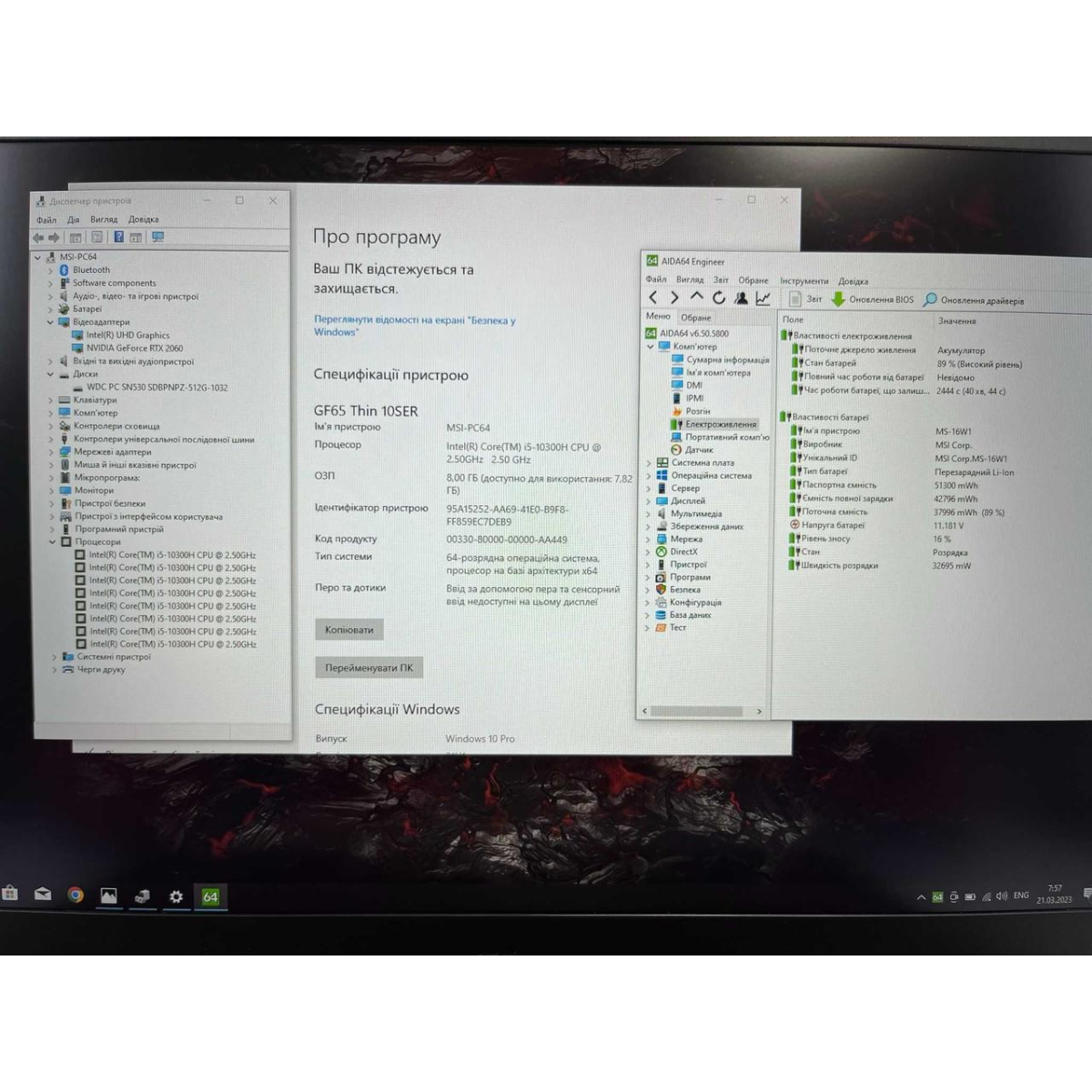Ноутбук MSI GF65 - 15,6“ 120Hz/ i5-10300H/ Ram 8Gb/ Ssd 512Gb/ RTX 2060 6Gb