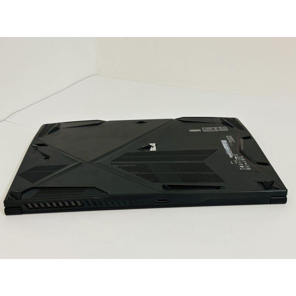 Металева поверхня кришки та області навколо клавіатури, унікальна вентиляція у нижній панелі у формі літери X.
