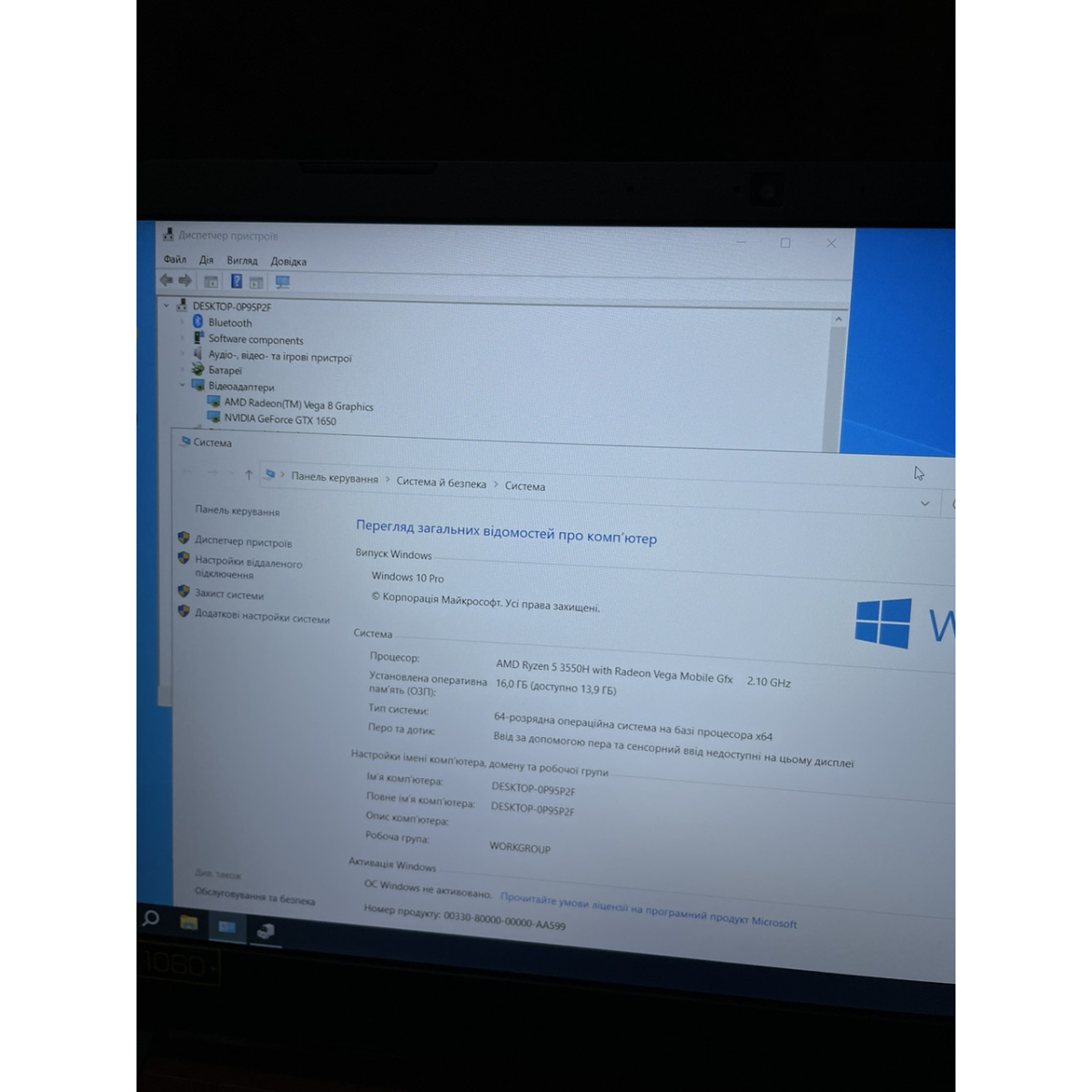 Екран 15.6“ IPS (1920x1080) Full HD, матовий / AMD Ryzen 5 3550H / RAM 16 ГБ DDR4 2133 МГц / SSD 256 ГБ + HDD 1000гб / nVidia GeForce GTX 1650 / Bluetooth / веб-камера / Windows 10 Pro / Порти: 2x USB 2.0, 1x USB 3.0, HDMI, Headphone/microphone combo jack / 2.1 кг / чорний