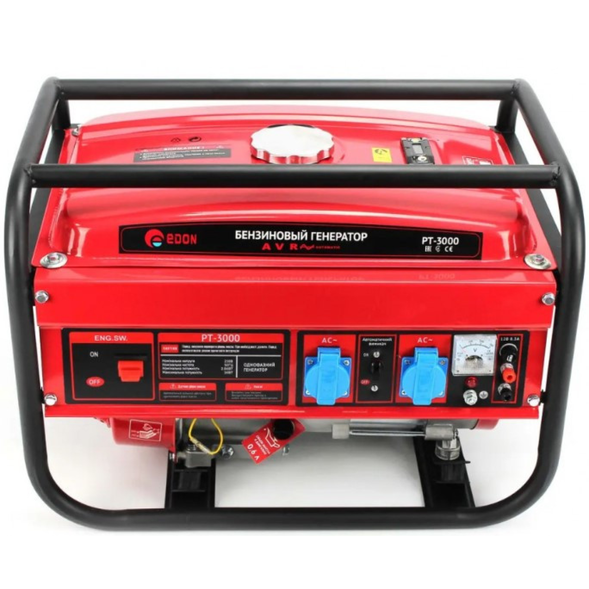 Бензиновий генератор Edon PT3000 - це якісний та надійний бензоінструмент, який виконаний з урахуванням усіх побажань споживачів. Це бензоінструмент, який має відмінну якість і при цьому радує покупців своєю низькою і цілком прийнятною ціною. Основне призначення даного типу інструментів - застосування їх як альтернативного джерела електроенергії. Апарат має міцну сталеву раму, завдяки якій весь механізм надійно захищений, а також значно спрощено його транспортування та зберігання. Для комфортного використання генератора Edon PT3000 його оснастили датчиком бензину, датчиком олії та вольтметром вихідної напруги. Також варто відзначити наявність в апараті системи автоматичної стабілізації напруги, за допомогою якої Ви отримуватимете якісну електромережу без стрибків та перепадів. Генератор Edon PT3000 має надійний і витривалий бензиновий двигун, який здатний витримувати великі навантаження. Завдяки даній електростанції Ви зможете забезпечити свою дачу або невеликий будинок чи гараж якісною електроенергією. Варто відзначити відносно тиху роботу генератора, що також важливо. Витрата цього генератора вбирається у 360 мл на кВт*ч. Складові компоненти апарата захищені від перегріву, що гарантує довговічну роботу апарату.