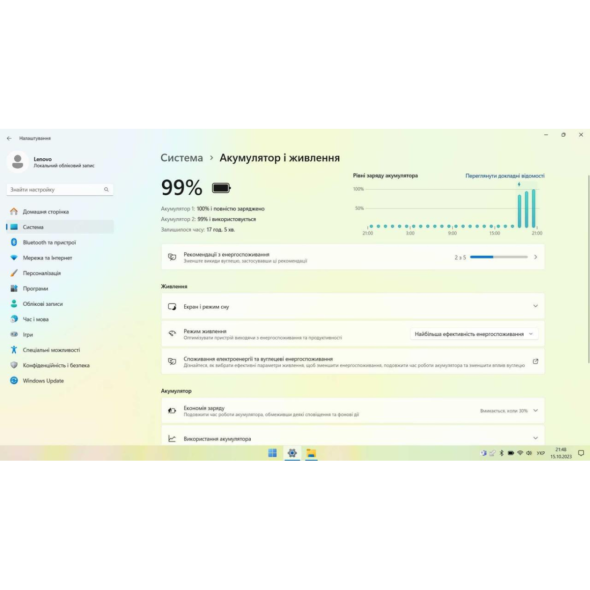 Ноутбук повністю налаштований та готовий до користування. Має хороший чистий звук, підсвітку клавіатури, 2 батареї посилені: зовнішня і внутрішня до 17 годин автономності,