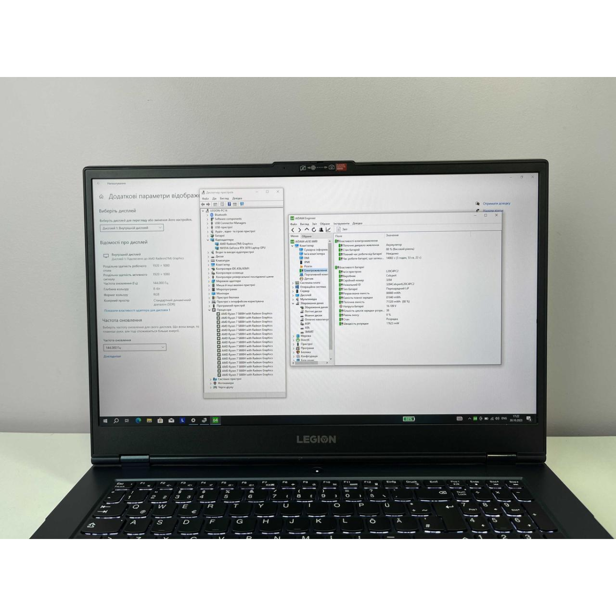 Великий яскравий екран 17.3“ Full HD Ips 144hz