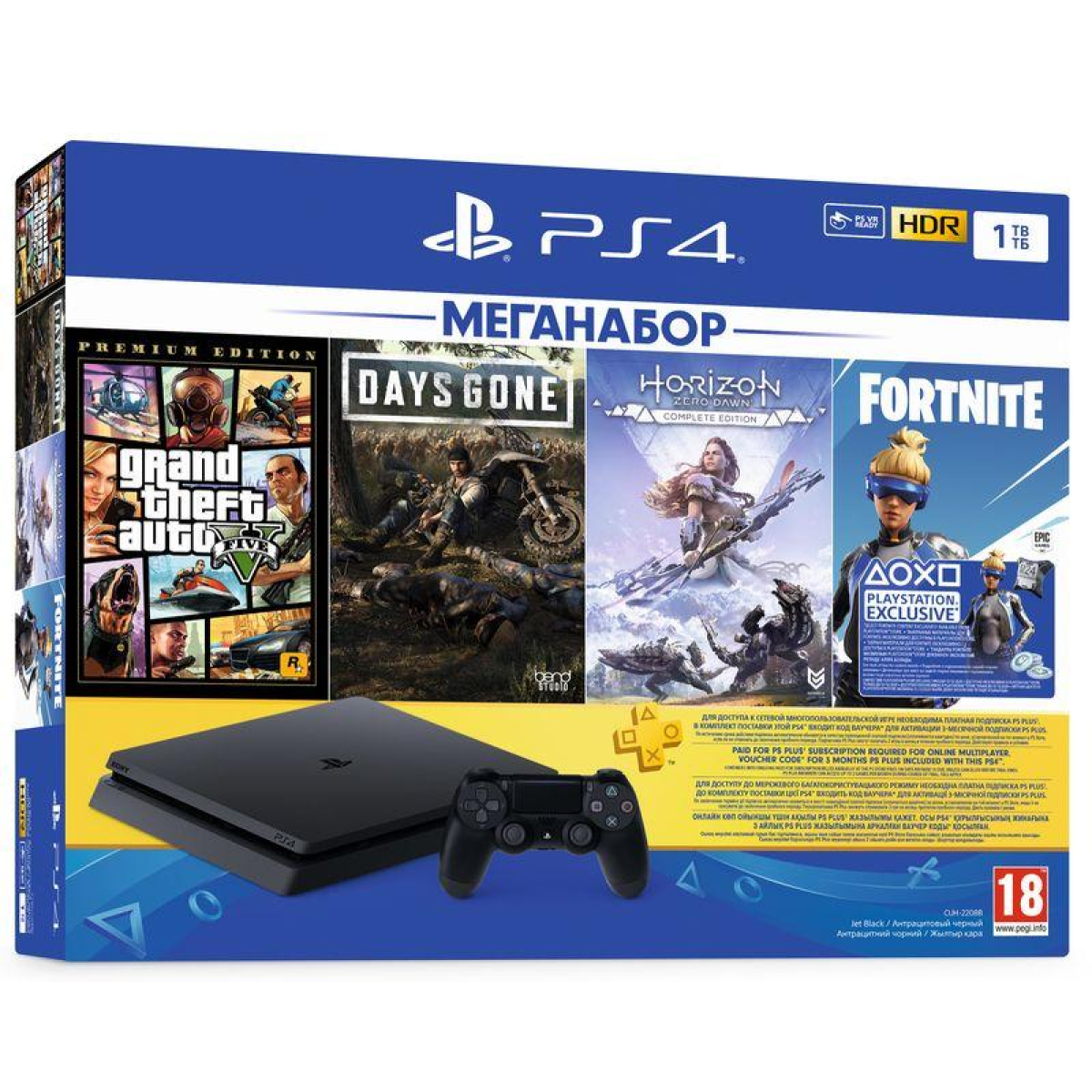Ігрова приставка Sony Playstation 4 Slim 1Tb + 3 ігри (GTA 5, Days Gone, Horizon Zero Dawn) PS4 slim