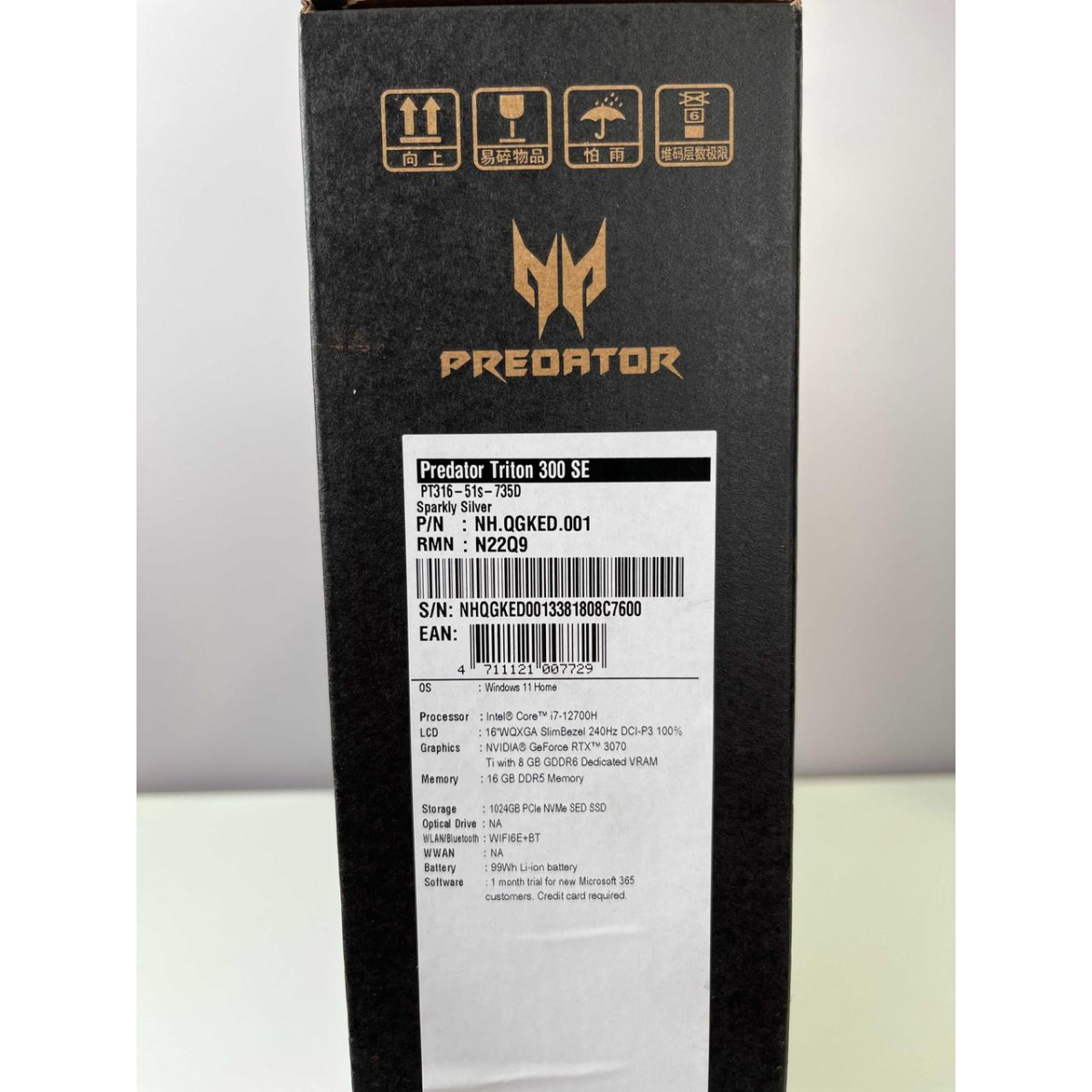 Игровой ноутбук Acer, модель Predator Triton 300 SE PT316-51s Sparkly Silver прекрасно оснащён для игр и развлечений. Быстродействие обеспечивает 14-ядерный процессор Intel Core i7-12700H с частотой работы 2,3 ГГц (до 4,7 ГГц в режиме TurboBoost) и 32 ГБ оперативной памяти. Для хранения данных установлен накопитель 1000 ГБ SSD. Видео на 16“ IPS экран с разрешением 2560x1600 точек выводит графический адаптер NVIDIA GeForce RTX 3070 Ti, 8 ГБ GDDR6. На корпусе ноутбука есть разъёмы : 3,5 мм аудио , 2xUSB 3.2, 1хUSB 3.2 (Type-C), HDMI. Из беспроводных коммуникаций в наличии Wi-Fi 802.11 ах и Bluetooth 5.2. Продолжительное время автономной работы обеспечивает аккумулятор .