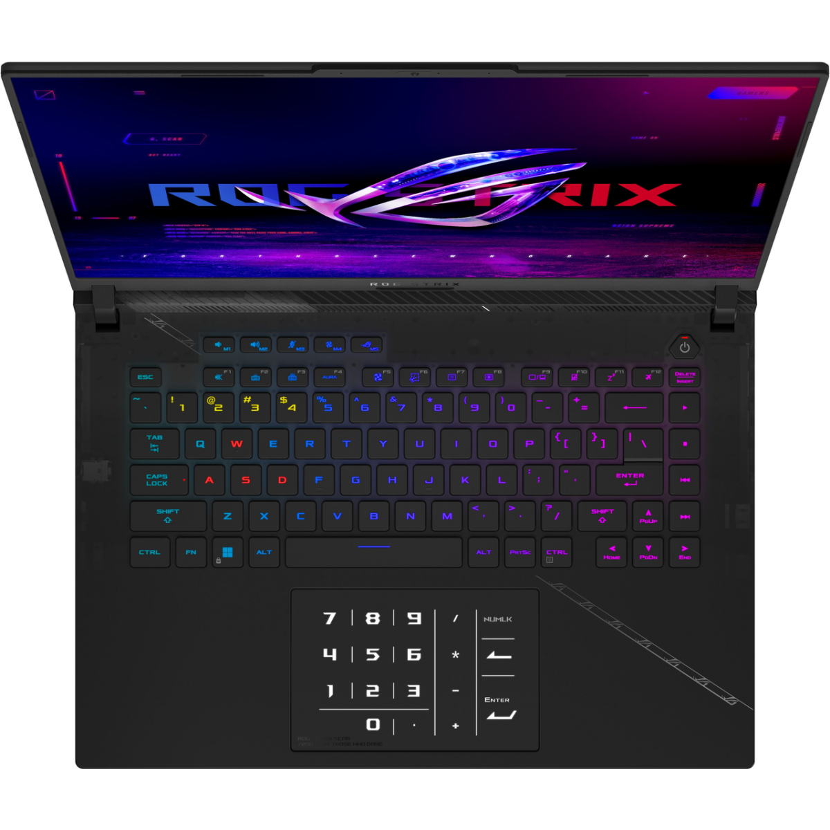 Пристрій має клавіатуру з Overstroke – технологією раннього зношування, щоб швидко реагувати на удар. Зручні навігаційні клавіші відповідають за точне керування, а тачпад спрощує роботу в різних додатках. Для персоналізації клавіатури окремі клавіші мають повнокольорове підсвічування, а щоб кожна гра була особливою – створюйте індивідуальні схеми в Armoury Crate.