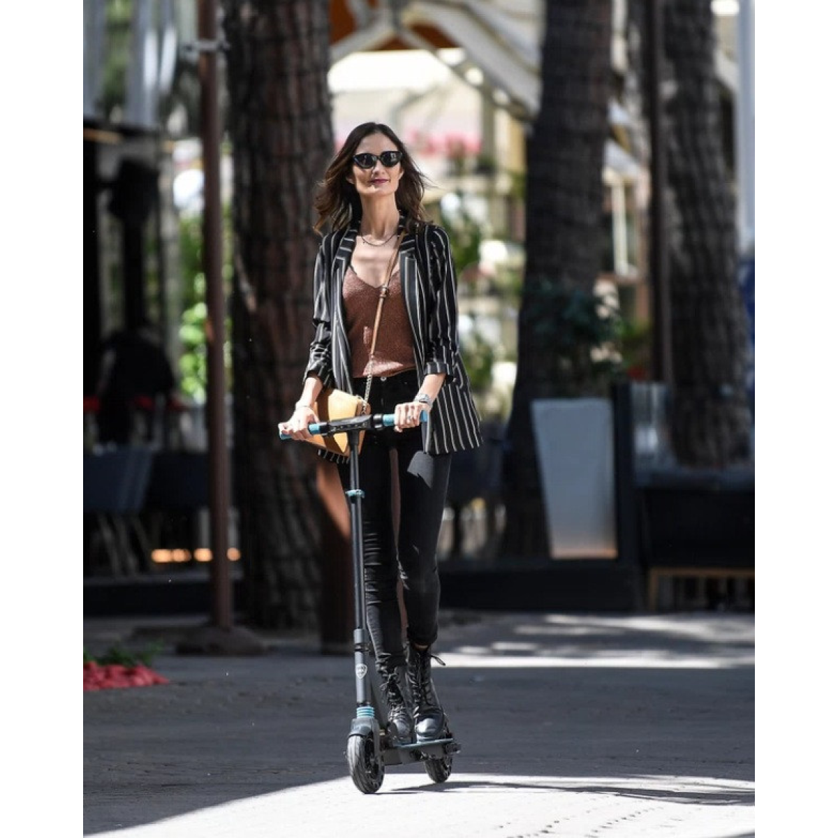 Завдяки інтуїтивно зрозумілій застібці, яка легко складається, цей електросамокат стане ідеальним союзником для кожного міського мандрівника. Більше не потрібно турбуватися про те, як його носити: просто складіть його та візьміть із собою в машину чи громадський транспорт, потім розгорніть і повертайтеся в дорогу в повній свободі!