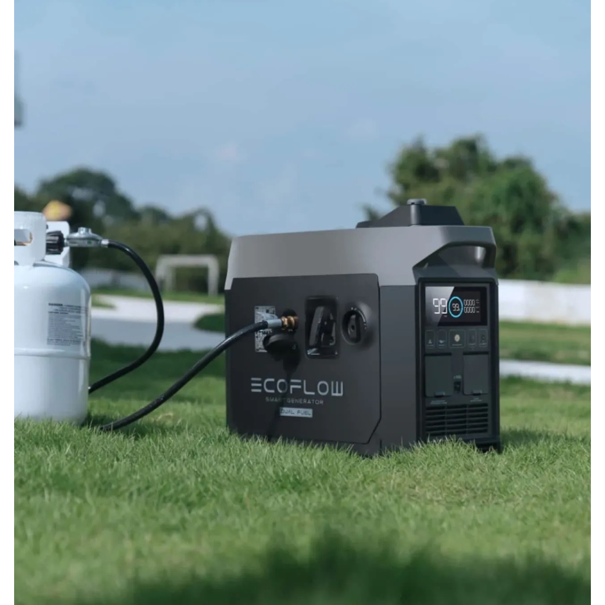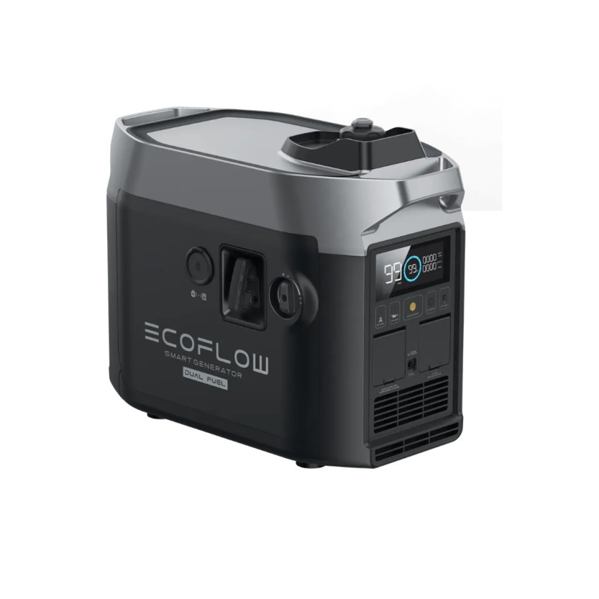 Представляємо інтелектуальний генератор EcoFlow Smart Generator Dual Fuel з можливістю роботи на газу та бензині. Він розумніший, а з газом — ефективніший та інтуїтивніший. Легко підключайте до станцій EcoFlow DELTA Max, DELTA Pro та системи Power Kits.